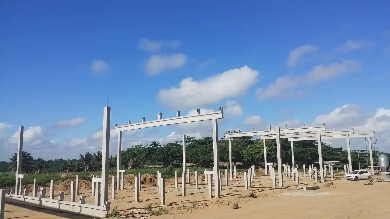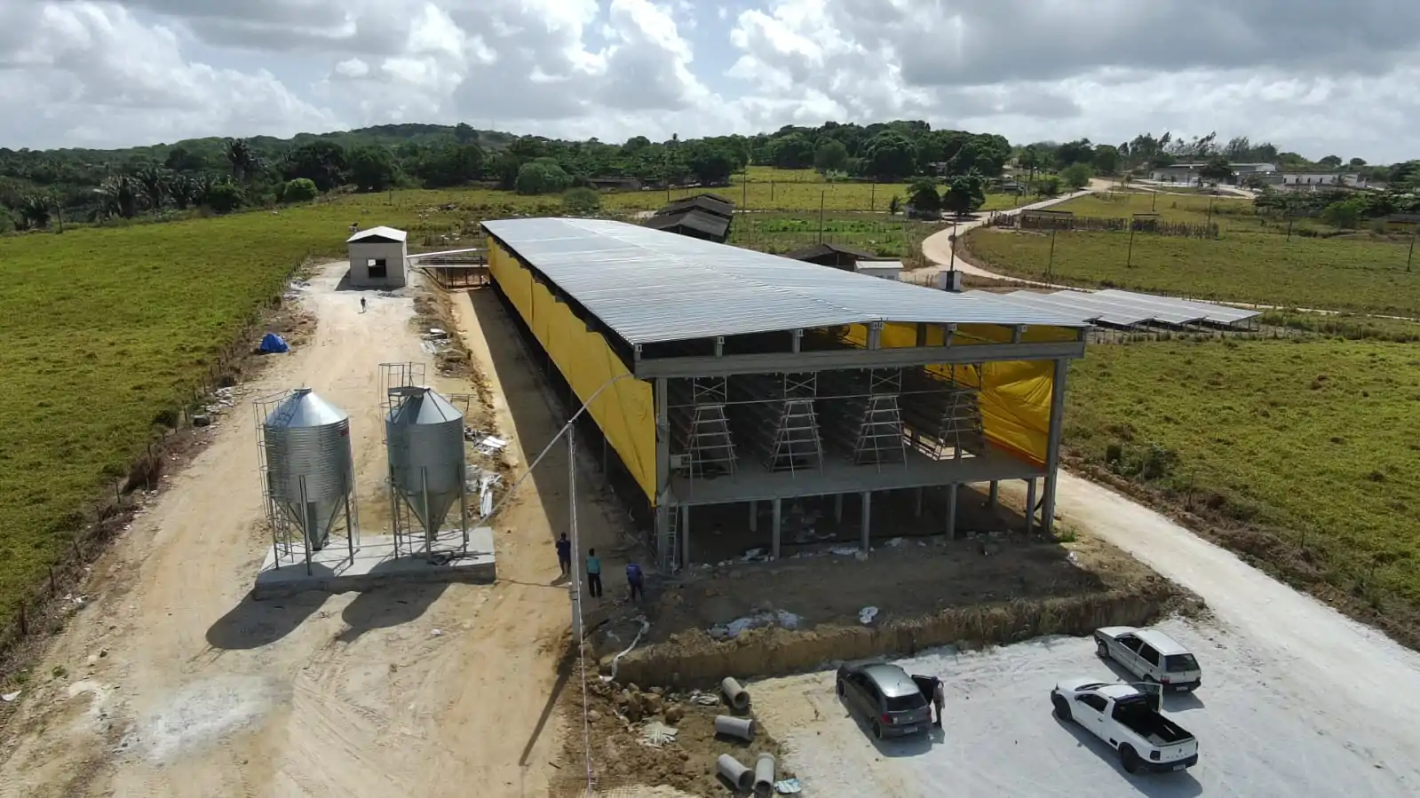 Galpão de avicultura destinado à criação de aves, com projeto e execução desenvolvidos pela Walter Lopes Pré-fabricados, contando com solução de piso elevado que facilita a higienização e possibilita o reuso.